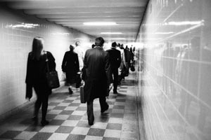 These four images were taken as part of a project I started during my year long photography course at Kingston University. I had several projects on the go at once, and at some point had to choose which to pursue and complete before the course ended, and which to abandon. I chose to stop photographing these commuters in favour of developing my landscape and still life portfolios. However, these four images stayed in my imagination for all these years, and by including them here I acknowledge my affection for them. They reflect the emotional bleakness of my own time working in the CIty, partly due to the photographic technique I employed, and partly because commuting to work is inherently a pretty depressing activity.