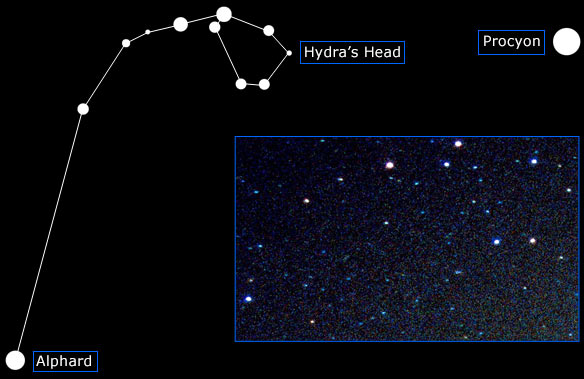 [Diagram below left shows the northernmost part of Hydra, the photo to the right of this is of Hydra's Head]