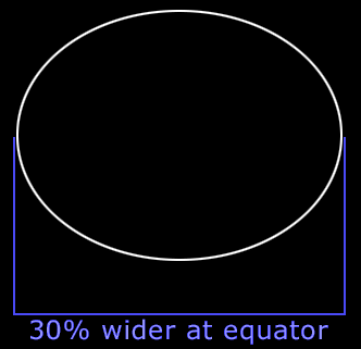 Distance: 79 light-years [Karkoschka, p74]. Regulus has a diameter around 4.3 times our sun [8]. Named by Copernicus, Regulus appears in binoculars as a fine silver-blue colour [Crossen p89]. "While almost all cool stars rotate slowly, rapid rotation is the norm for hot stars" - Regulus is spinning at 96% of its critical speed for breaking up, stretching the equatorial radius to about 130% of the polar dimension.[7]. The star rotates at 317 km/s [8] and completes one spin in 15.9 hours [9]. We see Regulus almost equator-on [7].